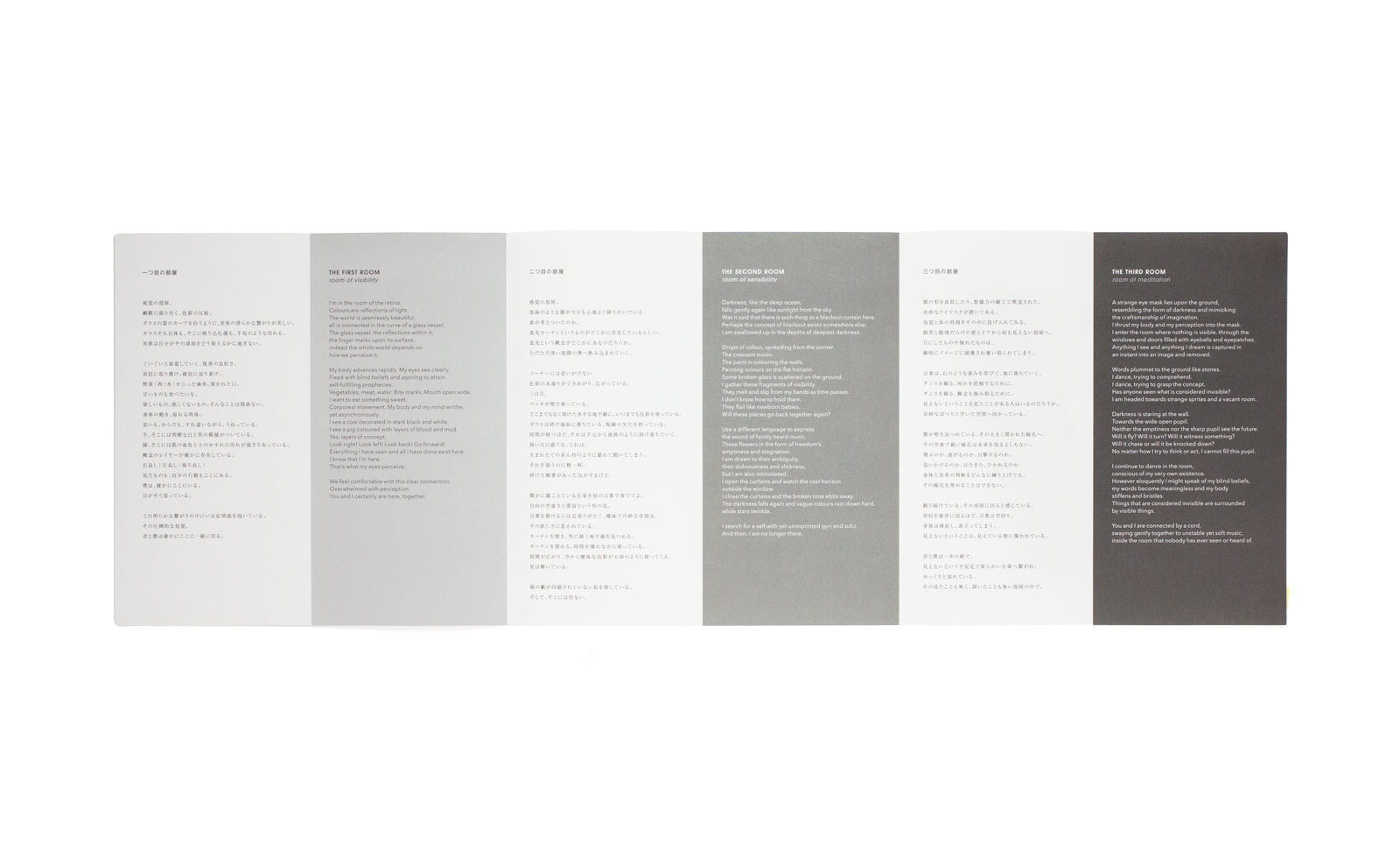 禅フォトギャラリーでの初個展となった前作『泳ぐ身体』で、光と影の隙間を生きる人間性の揺らぎを表現した原田は、今作の『三つ目の部屋へ』で人間の内側に潜む意識にフォーカスを あてた。その曖昧で揺らぎやすい明滅を、古典的な写真技法「レイヨグラフ」とストリートフォトグラフを混ぜ合わせ、色彩際立つカラー写真作品として制作しました。「身体を動かす-意識する-無意識になる」という誰もが日常で身に付けている力の繋がりを、目に見えない1つの物語として所有していることを示唆しています。